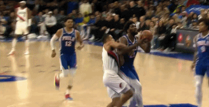 打凯尔特人,恩比德命中了一个平平无奇中距离且造成了对手犯规