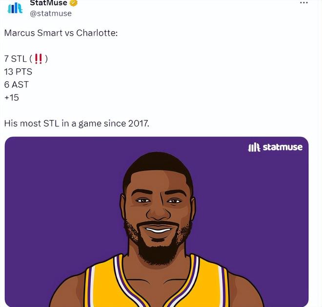 斯马特的7次抢断创造了一系列纪录。单场7次抢断是斯马特湖人生涯最高,他的生涯纪录是8次抢断,同时也是斯马特自2017年以来的单场最高抢断数。7次抢断是本赛季联盟单场最高抢断数。