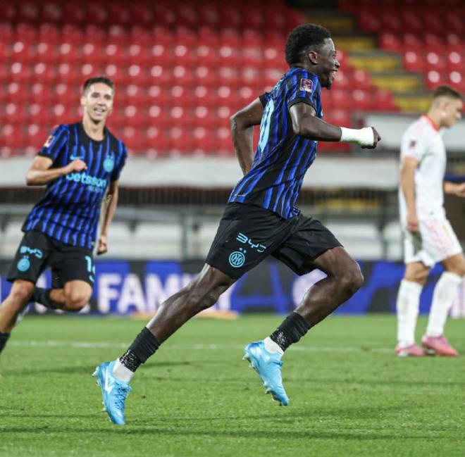 于是,在卡马特的右边翼卫打了两个整场之后,国际米兰一线队的迪乌夫便出现在了这个位置。你可以理解为纯属巧合,但实际上在邓弗里斯刚刚受伤时,国米新闻网确实曾经有过一篇并没有激起什么浪花的文章,说的是建议齐沃可以考虑征调U23的卡马特来出任右边翼卫的位置;结果卡马特没来,迪乌夫来了。